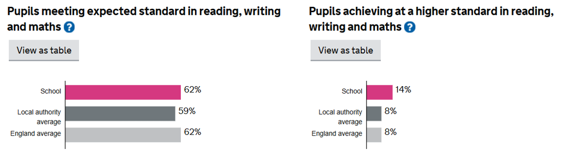 The information shows the attainment for our pupils in statutory assessments. When National figures are released, we will add these for comparison purposes. We are delighted with the excellent results across the school. They are a tribute to the children and the staff.
